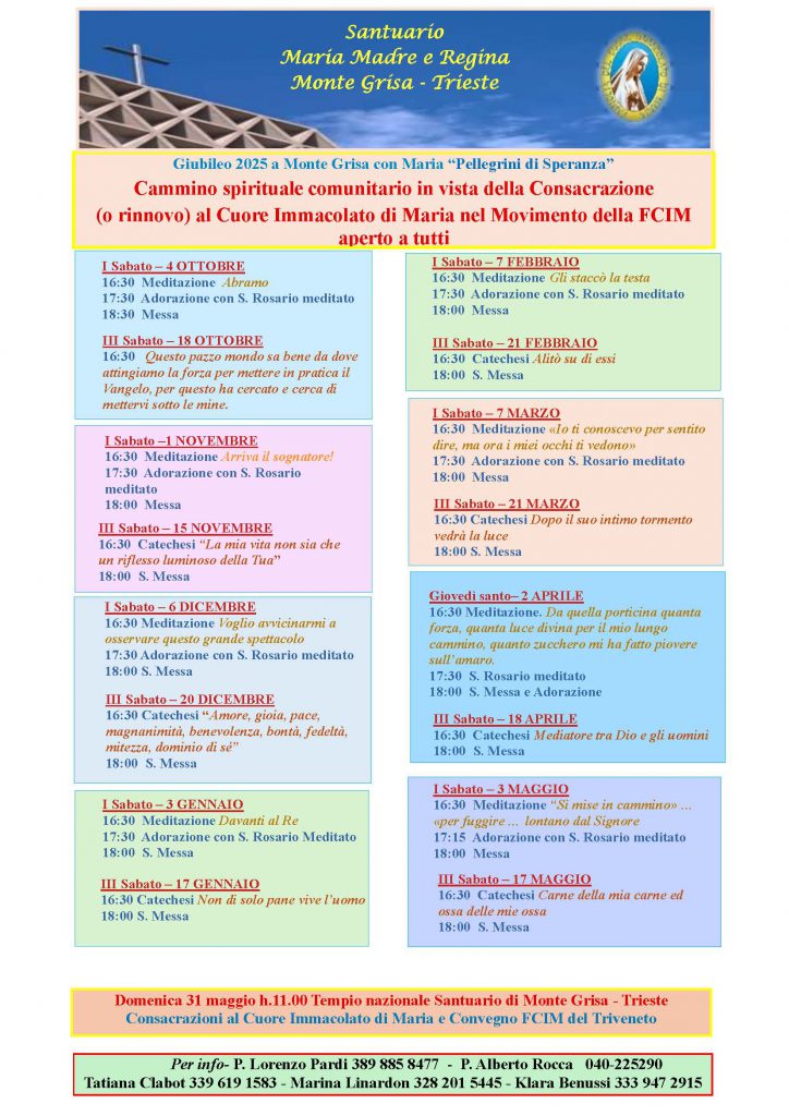 il Santuario di Monte Grisa è una tappa di interesse importante per i gruppi in pellegrinaggio verso Međugorje. Qui i gruppi celebrano la Santa Messa in ringraziamento alla Madonna.